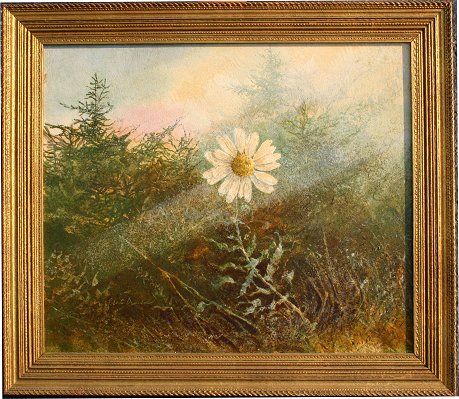 EVERGREEN LANDSCAPE WITH DAISY