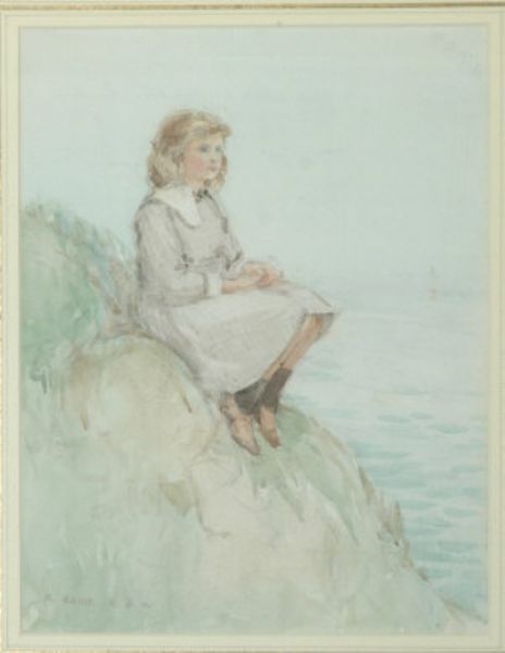 Girl seated on a rock looking out to sea