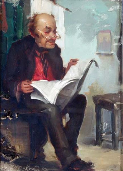 Zeitungslesender alter Mann
