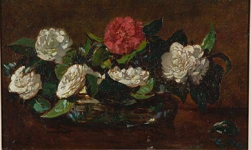 Vase of camellias