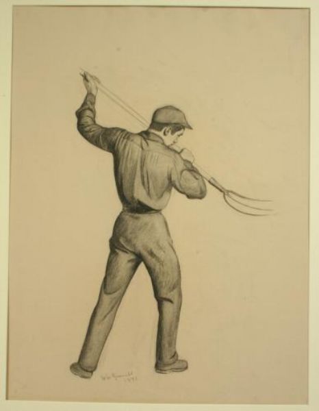 man pitching hay