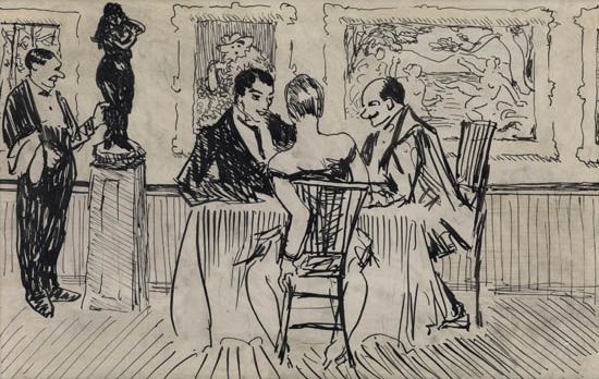 Pen and ink on paper