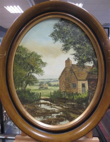 Two oval framed country landscapes