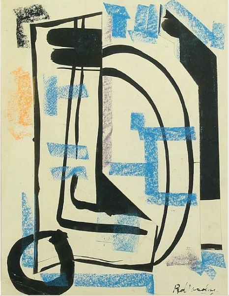 Ink crayon and collage on paper