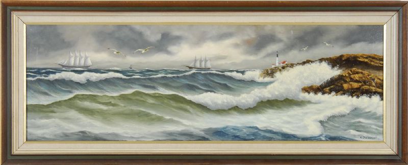 Panoramic seascape with a lighthouse on a rocky cliff