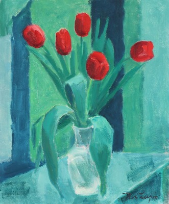 Still life with tulips in a vase
