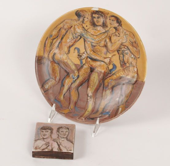 ); Lot of 2 glazed ceramic pieces; Portrait plaque