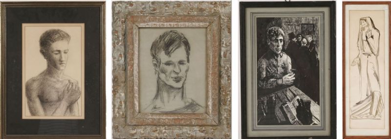 | Drawing Lot of 4 drawings; charcoal - orig frame. Watercolor, Veiled Figure | |