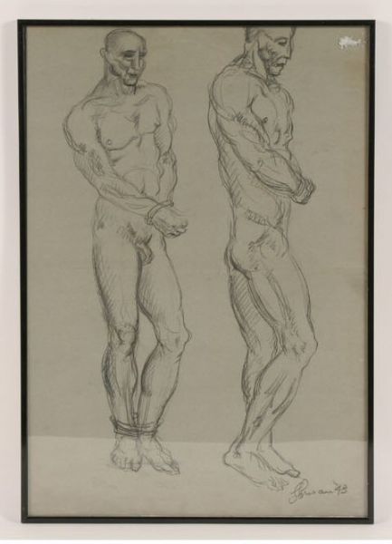 two views of a bound nude male