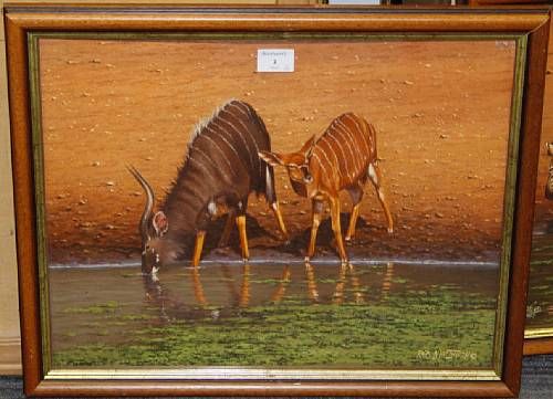 | 'Zebra at watering hole'; 'Nyala pair sharing a watering hole' a pair | |