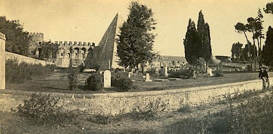 | Vieux Cimetière protestant avec la pyramide de Caius Cestius, Rome, vers 1860 | |