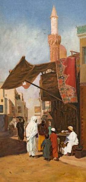 Scène de souk, le marchand de tapis.
