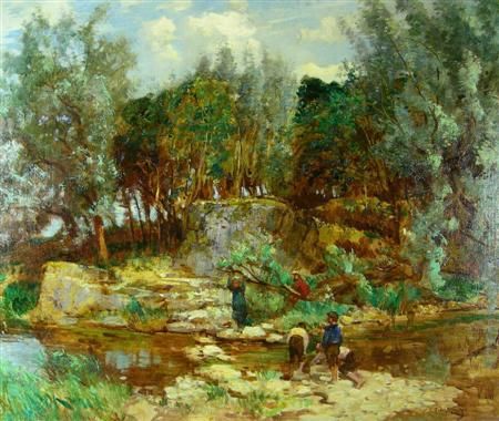 CHILDREN PLAYING IN THE RIVER TYNE, EAST LOTHIAN