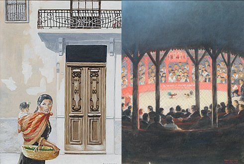 | one depicting Mexican Cockfight, the other Mexican Village Scene with young girl | |