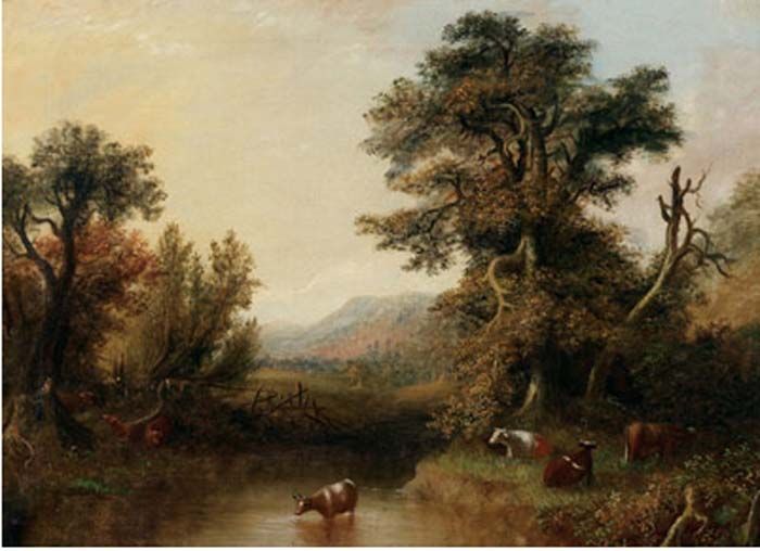 CATTLE BY A STREAM