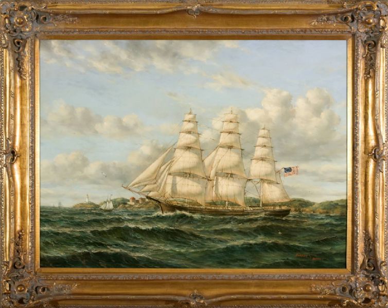 THREE-MASTED CLIPPER SHIP UNDER FULL SAIL