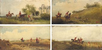 | Huntsmen before a country house; On the scent; Gone to ground; and The kill | |