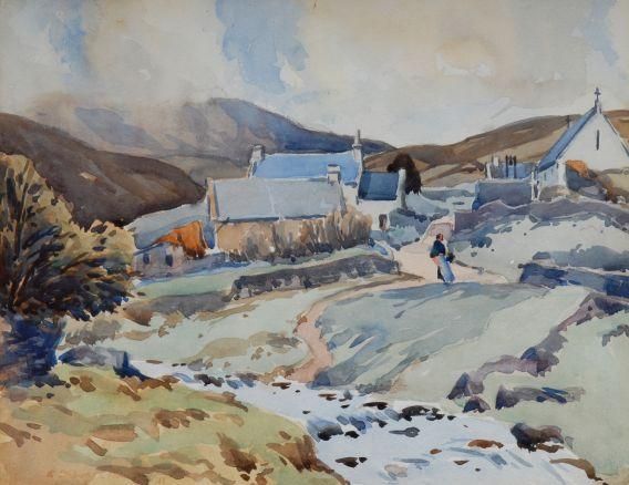 | Dunquin, Co. Kerry, a stream, cottages and the hills beyond | |