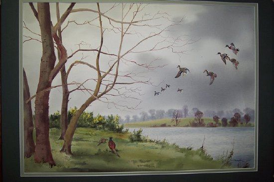 Mallard and Pheasant by a River