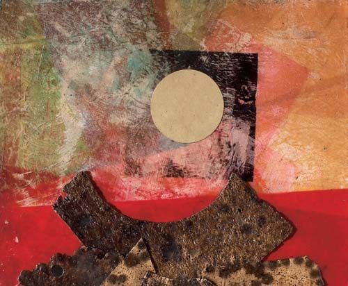 Collage and cork on board