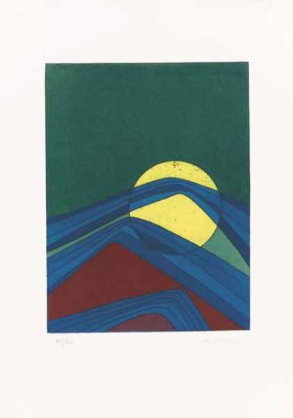 | Cartella con 6 acqueforti a colori con poesia di Guido Ballo | |