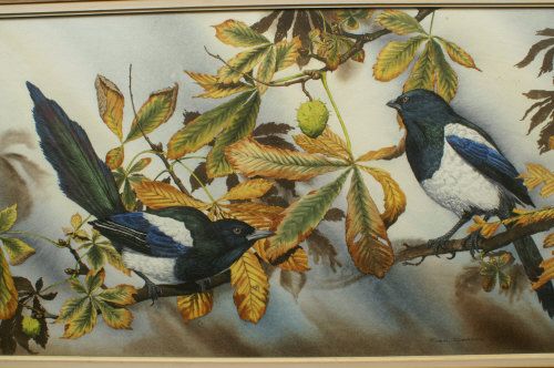 Magpies on Horse Chestnut Branches