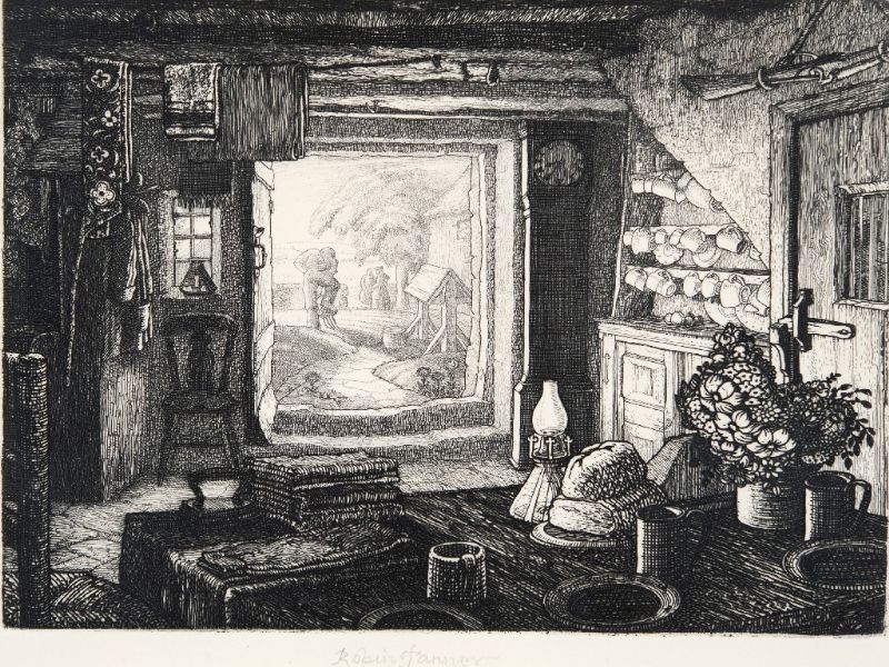 Etching on cream wove