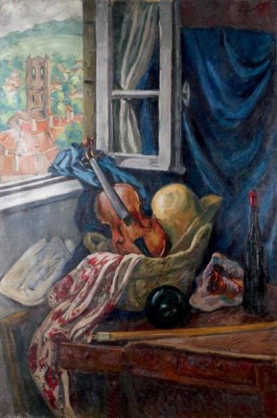 | NATURE MORTE ET FENÊTRE OUVERTE SUR L'ÉGLISE DE MAULE | |