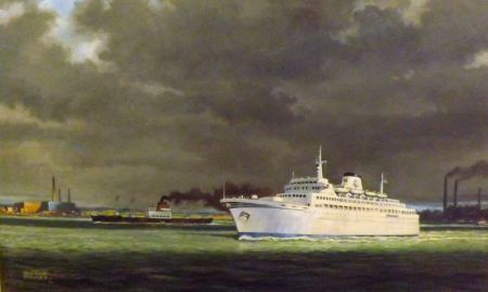 Liner and Tug in Southampton Water