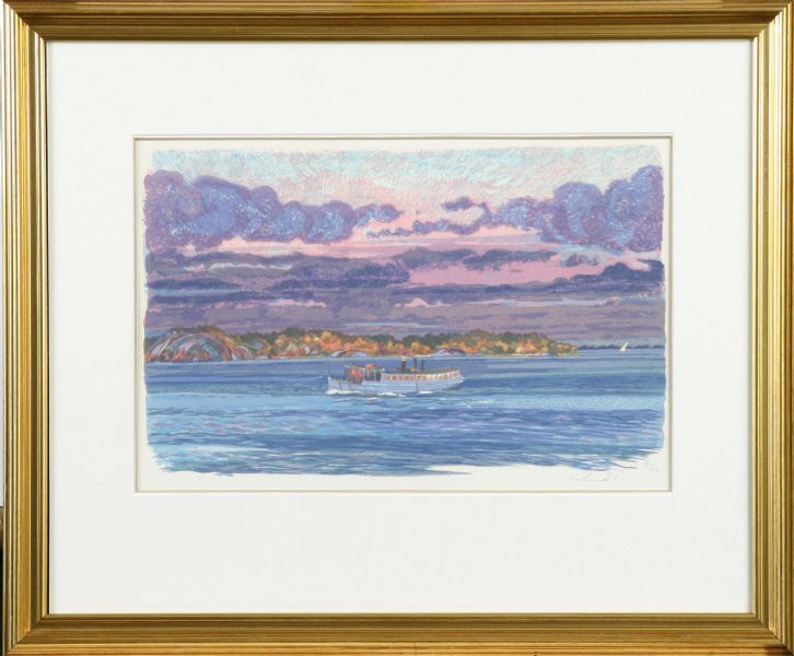 Skärgårdsmotiv med ångslup