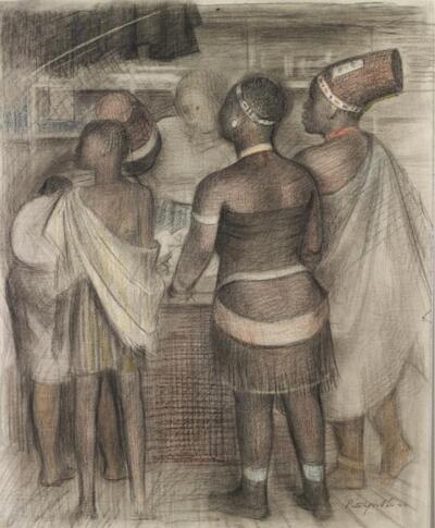 ZULU SHOPPERS AT A MARKET STALL, SOUTH AFRICA