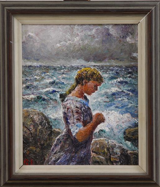 Flicka vid kust