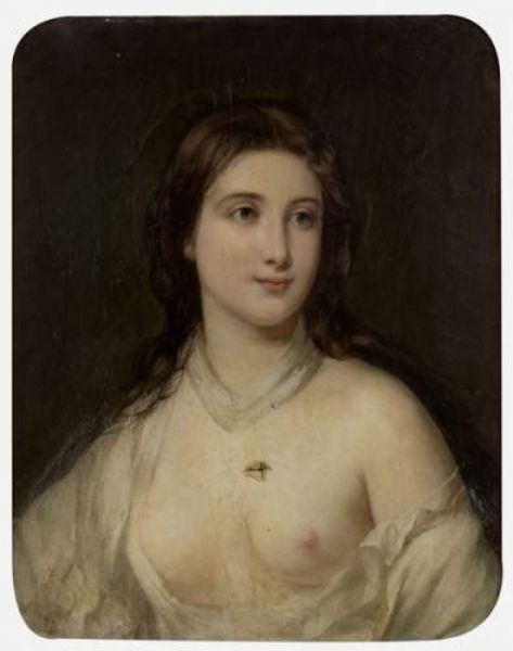 PORTRAIT DE JEUNE FEMME AU BUSTE DÉNUDÉ.