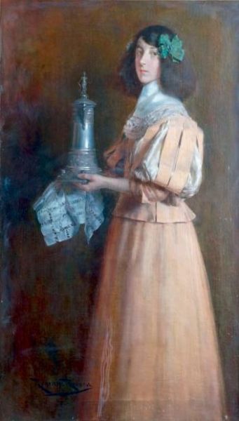 JEUNE FEMME DU SIÈCLE D'OR TENANT UNE AIGUIÈRE EN ARGENT