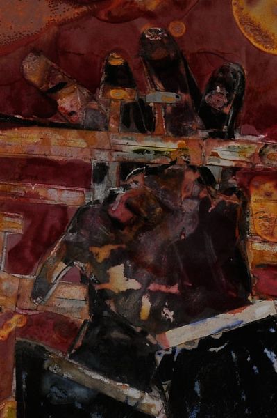 Collage and watercolor on fiber board