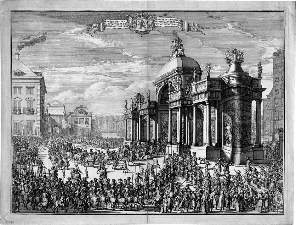 Einzug Willem III. durch den Triumphbogen am Buitenhof in Den Haag