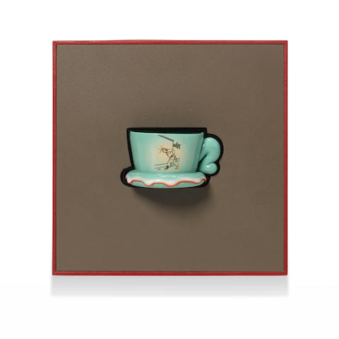Porcelain glaze, china paint, decal, buckram, acrylic, lacquer, urethane, flocking and wood