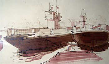 Pen and wash on paper