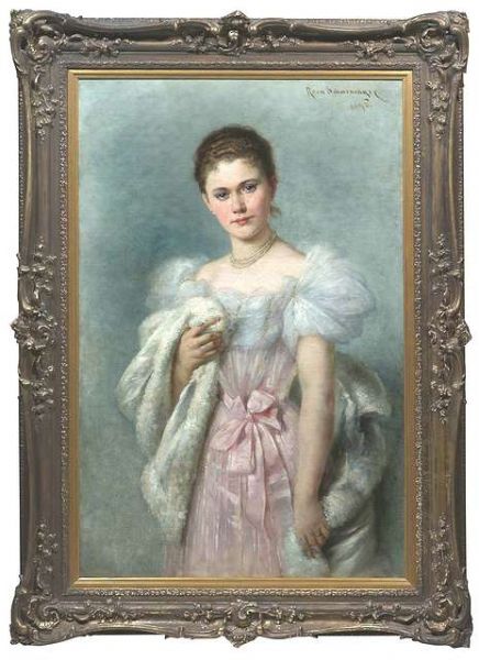 Portrait of a young lady wearing a pink gown and a white fur jacket.