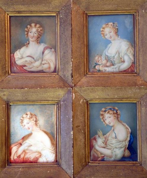 Watercolor on ivory, 4 items