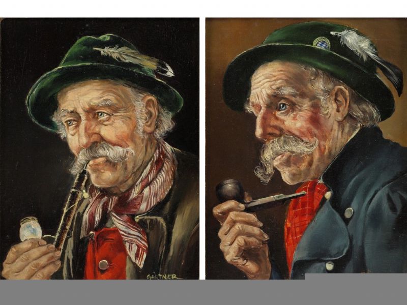 Portrait of a Bavarian Gentleman, shoulder length, holding a pipe,