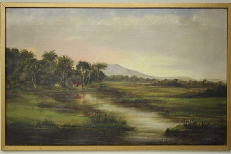 Javaans landschap rond 1886 in dorso naam kunstenaar