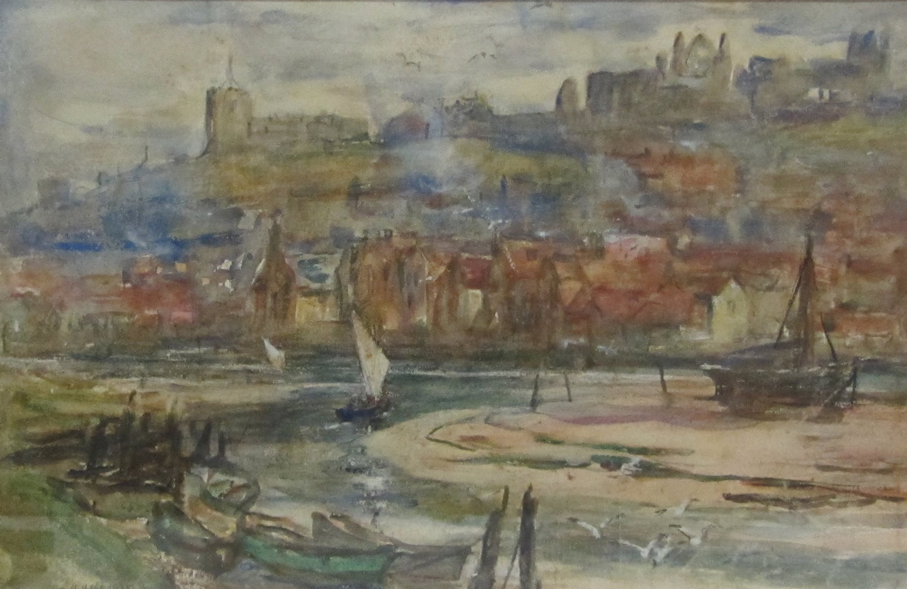 View Across Whitby Harbour towards the Abbey and East Cliff'