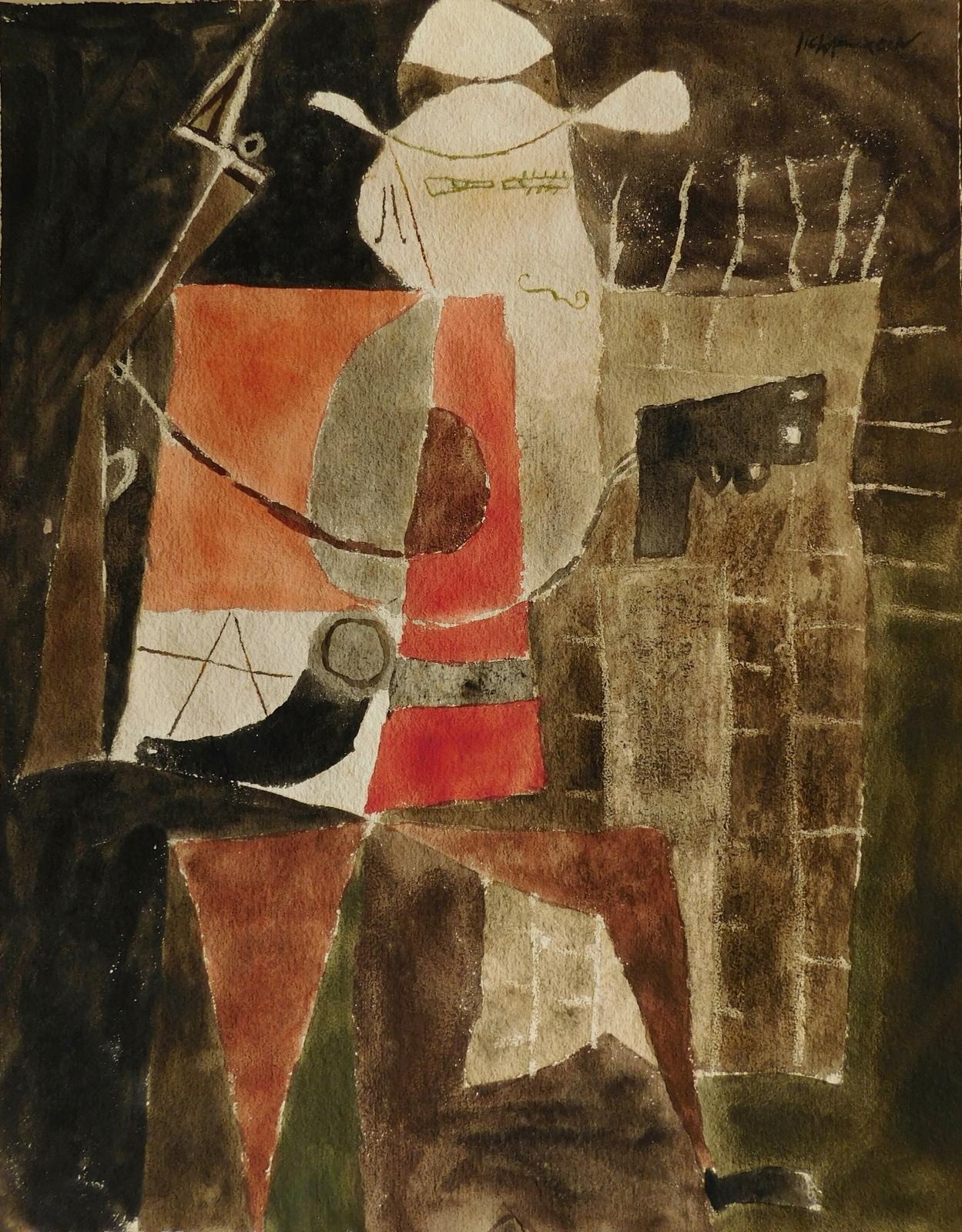 Watercolor and colored pencil or crayon on paper