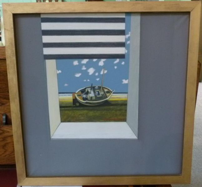 Beached vessel through a window
