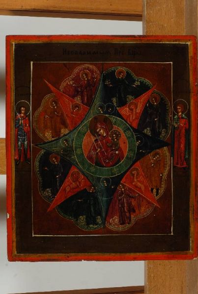 Gottesmutter vom unverbrennbaren Dornbusch, mit Engeln u.den Heiligen Dimitrij u.Pantelejmon (Arztpatron)