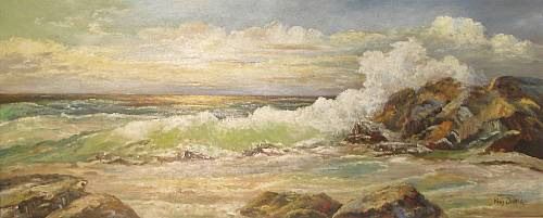 Sunlit Waves Crashing against Rocks