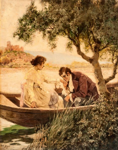 Gallant lovers sitting in a boat
