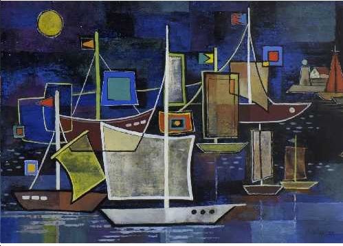 Hafen mit Segelschiffen. 1953