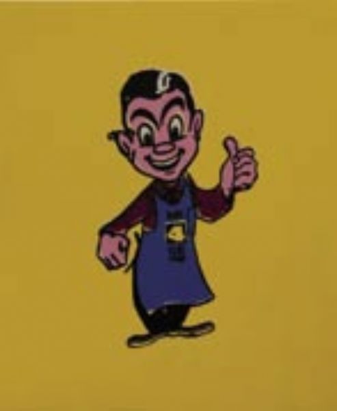 Acrylic silkscreen and lacquer on board in two panels
